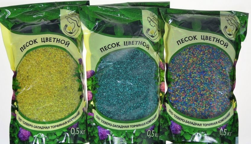 Цветной песок является отличным декоративным материалом и структурирующим почву материалом.Наличие