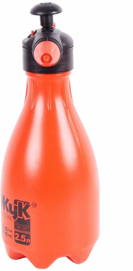 Опрыскиватель «Жук» ОП-205 — это ручной помповый опрыскиватель объёмом 2,5 л, предназначенный для ухода за комнатными и садовыми растениями, а также для хозяйственных работ. Он позволяет создавать давление в баке с помощью насоса, а распыл жидкости осуществляется нажатием на клавишу ручки.Применение