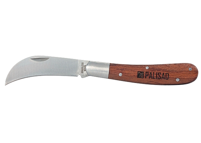 Карманный складной нож. Полотно из нержавеющей стали с остро заточенным лезвием. Применяется в домашнем хозяйстве, туристических поездках, а также в садоводстве для прививки фруктовых деревьев и кустарников. Используется для обрезки живых и поврежденных, но не сухих ветвей.Наличие