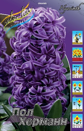 Гиацинт Пол Херманн относится к виду восточных, из группы крупноцветковых, цветок фиолетовый с сиреневой каймой, в диаметре 4 см, сильный аромат. Размер луковицы: 15/16. Соцветие плотное цилиндрическое, длиной 22 см, состоит из 25-40 цветков. Высота растения 35 см. Цветет в начале мая, 18-20 дней. Пригоден к выгонке с февраля. Высаживать луковицы гиацинтов необходимо в ясную сухую погоду, что позволит избежать гнилостных заболеваний. Расположение 15х20, 20х20, срок посадки: в конце сентября или начале октября. Как большинство современных сортов гиацинтов-устойчив к неблагоприятным погодным условиям. Рекомендуется для создания эффектных композиций и для ранней выгонки.Наличие