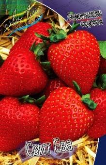 Земляника садовая Свит Ева. Высокоурожайный, ремонтантный сорт, хорошо растёт на любой почве. Ягоды крупные, тёмно-красные. Посадка: между рядами 30 см - 20 см, сажать по корневую шейку, не засыпая землёй сердечко. Под посадку рекомендуется внести перегной. Время посадки: с ранней весны до осени. Лучше всего растет на легких и средних по механическому составу почвах с кислотностью рН 5,0–6,5. Месторасположение: солнце. Устойчив к вертициллёзу и мучнистой росе. Сорт зимостойкий. Использование: открытый грунт, контейнер, кашпо.Наличие