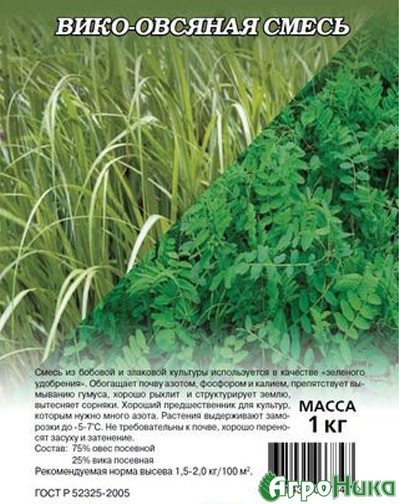 Вико овсяная смесь – одна из наиболее часто используемых травосмесей. Это обусловлено свойствами вики и овса. Их можно использовать в лесолуговой, а также лесостепной зоне. В сухой массе вики яровой содержится около 19% белка. При этом содержание клетчатки очень низкое. Овес представляет собой незаменимую в сельском хозяйстве кормовую культуру. Он используется на зеленый корм, а также на силос и сено.Смесь вики и овса для создания пастбища использовать очень эффективно. Период от посева трав до их максимальной продуктивности составляет девяносто дней. Смесь может составлять основу зеленого конвейера. Смесь готова к скармливанию крупному и мелкому рогатому скоту, свиньям, птице и кроликам уже через 45-60 дней.