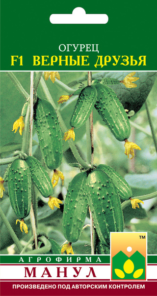 F1 Верные друзья - популярный, очень скороспелый пчелоопыляемый пучковый корнишонный гибрид женского типа цветения для открытого грунта, тоннелей, весенних теплиц. В плодоношение вступает на 37-39-й день от всходов. В узлах формируется от 2-3 до 5-8 и более завязей. Холодостойкий. Ветвление слабое, что позволяет значительно упростить уход за растениями. Характеризуется обильным плодоношением в любых условиях выращивания. Зеленцы бугорчатые, черношипые, овально-цилиндрической формы, длиной 8-10 см. Засолочные и вкусовые качества очень высокие. Холодостойкий, устойчив к оливковой пятнистости, вирусу обыкновенной огуречной мозаики, толерантен к мучнистой росе и ложной мучнистой росе. К гибриду подсевают 10 % опылителя.Наличие
