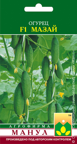 Огурец F1 Мазай - очень скороспелый партенокарпический гибрид женского или преимущественно женского типа цветения с комплексной устойчивостью к болезням. Предназначен для выращивания в весенних теплицах, тоннелях, а в более южных регионах — и в открытом грунте. Скороспелый, светолюбивый, стартовая партенокарпия высокая. Ветвление ограничено. Выделяется массированной отдачей урожая, одновременным наливом большого количества зеленцов на растении (до 6-8) без потери их товарных качеств. В узлах формируется по 1-2 завязи. Некоторые междоузлия могут быть сближены, отчего плоды на стебле выглядят как «гирлянды». Зеленцы бугорчатые, белошипые, со средним опушением, длиной 10-12 см; вкусовые и засолочные качества высокие. Гибрид устойчив к мучнистой росе, оливковой пятнистости, вирусу обыкновенной огуречной мозаики, толерантен к ложной мучнистой росе, корневым гнилям.Плотность посадки в теплицах 2,5 раст./м2, в открытом грунте 3-5 раст./м2.